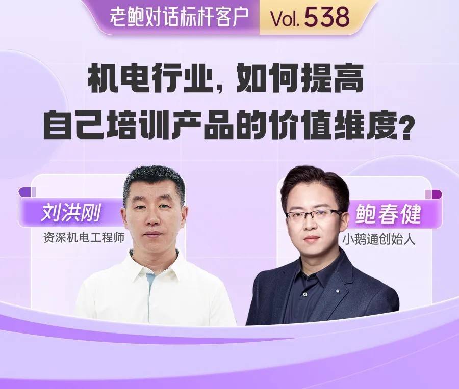当深耕机电行业 20 余年的手艺专家跨界投身培训范畴,会碰撞出如何的立异火花?正在小鹅通《老鲍对话标杆客户》栏目中,灵智科教创始人刘洪刚分享了他的跨界实践 —— 凭仗深挚的机电手艺积淀,以 “玩” 为焦点沉塑培训逻辑,正在小鹅通的全链赋能下,从制制业成功转型,向着 “百年培训品牌” 的方针稳步前行。