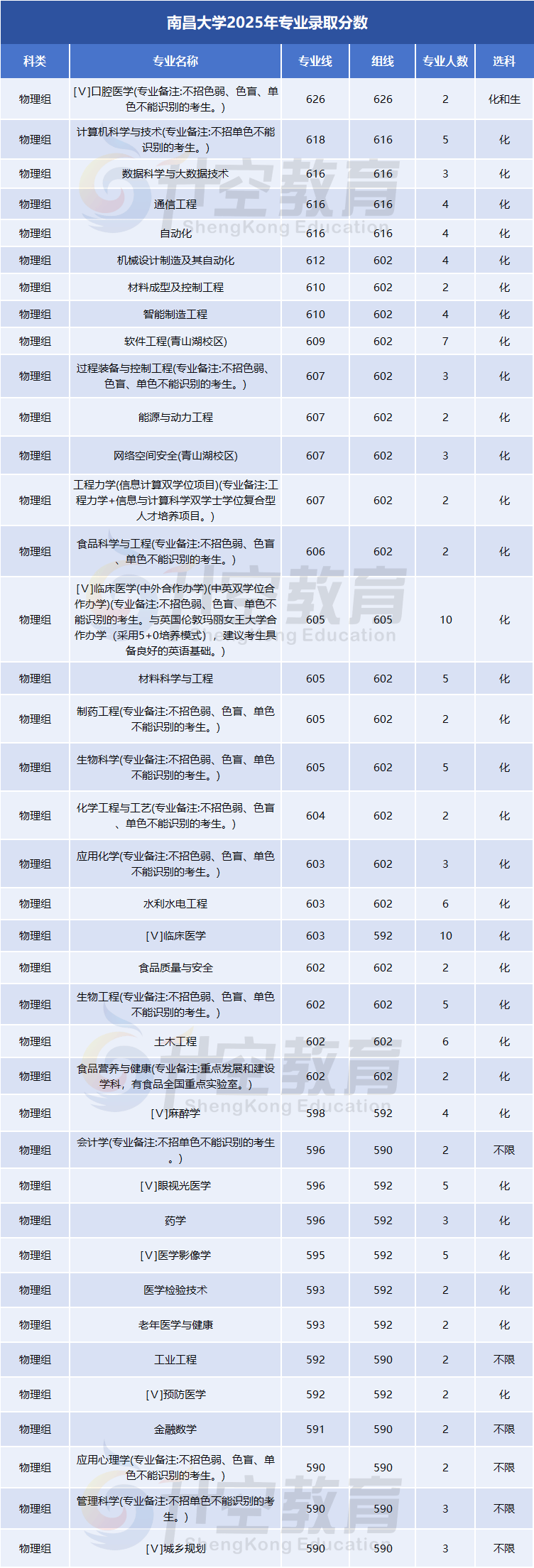 【数据】南昌大学、福州大学2025年各专业登科分