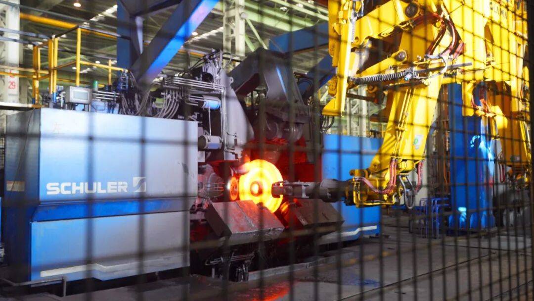 正在位于东营经济手艺开辟区的山东波鸿轨道交通配备科技无限公司出产车间内,通红的钢坯颠末千余度高温加热,由机械手精准传送至万吨压机进行锻轧成型,沿着从动化出产线,再通过热处置和高精度数控机床加工,“目标地:”的标签非分特别夺目。
